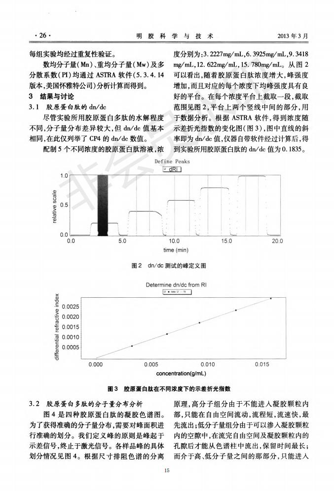 Chromatographic column and laser light scattering are used to characterize the molecular weight of c
