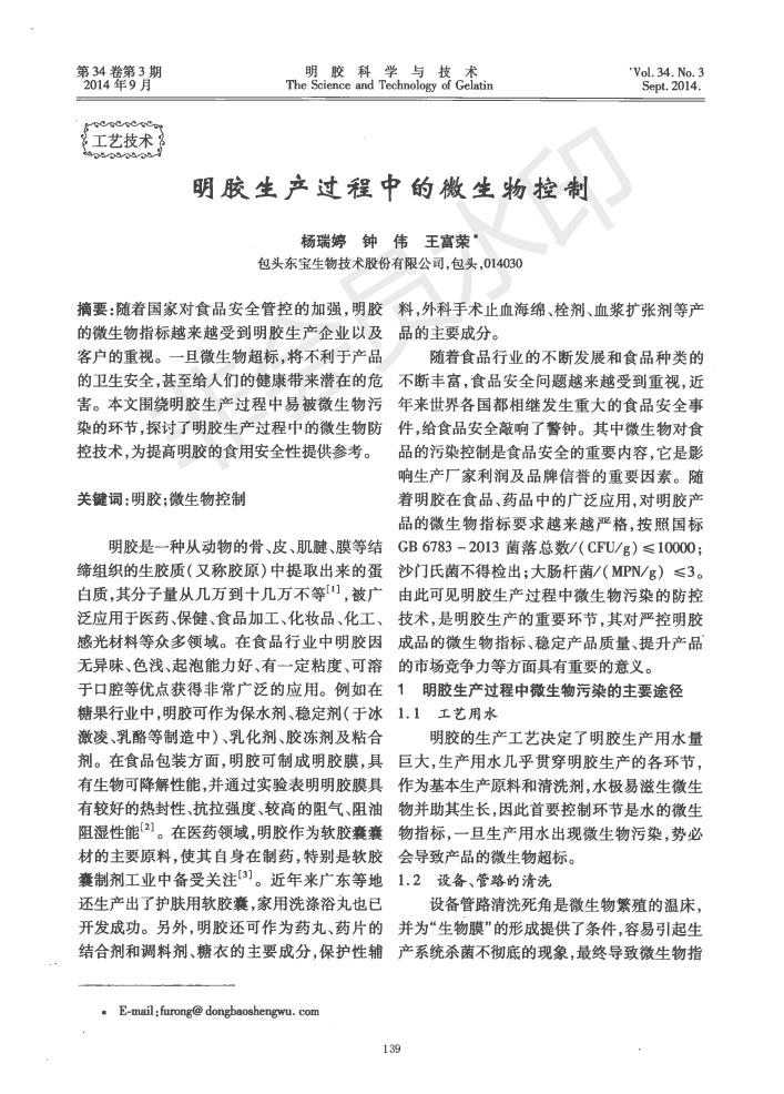 Microbial control in the production of gelatin