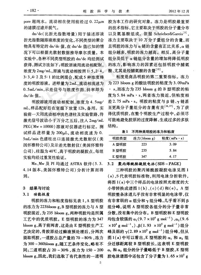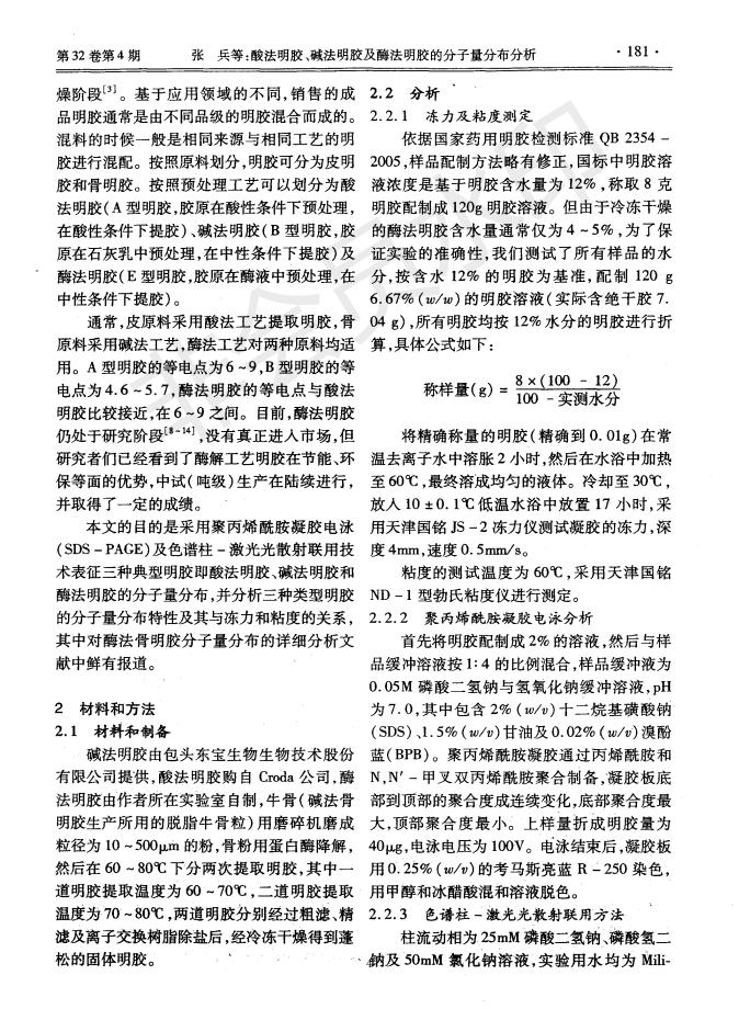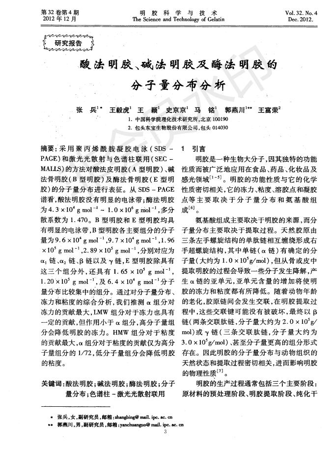 酸法明胶、碱法明胶及酶法明胶的分子量剖析漫衍剖析