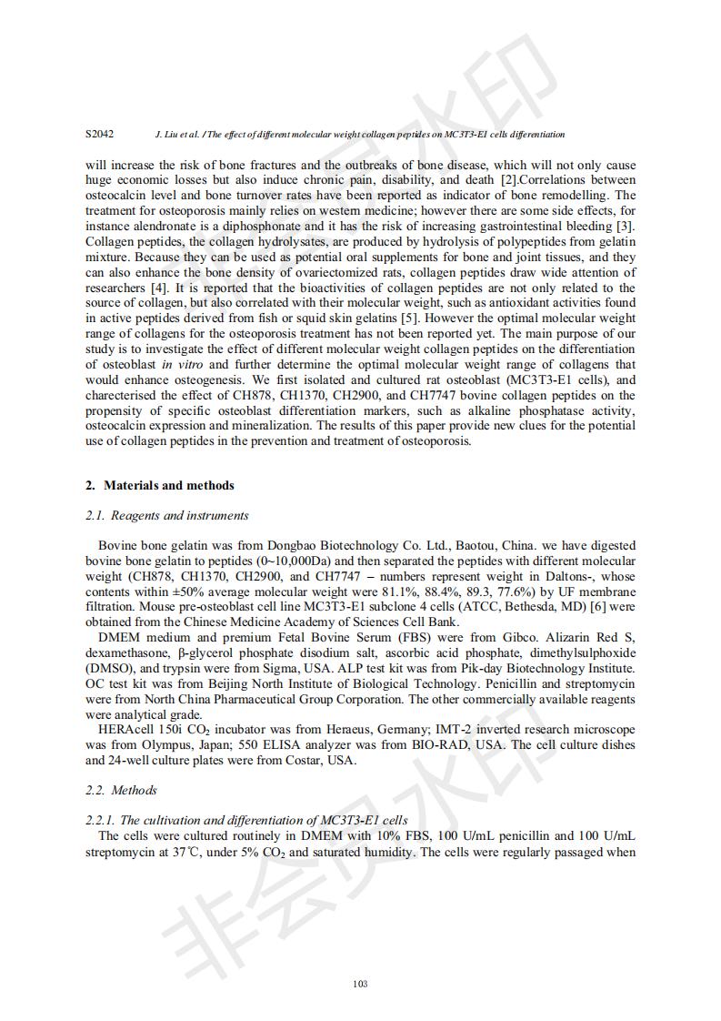 差别分子量胶原卵白肽对MC3T3-E1细胞分解的影响