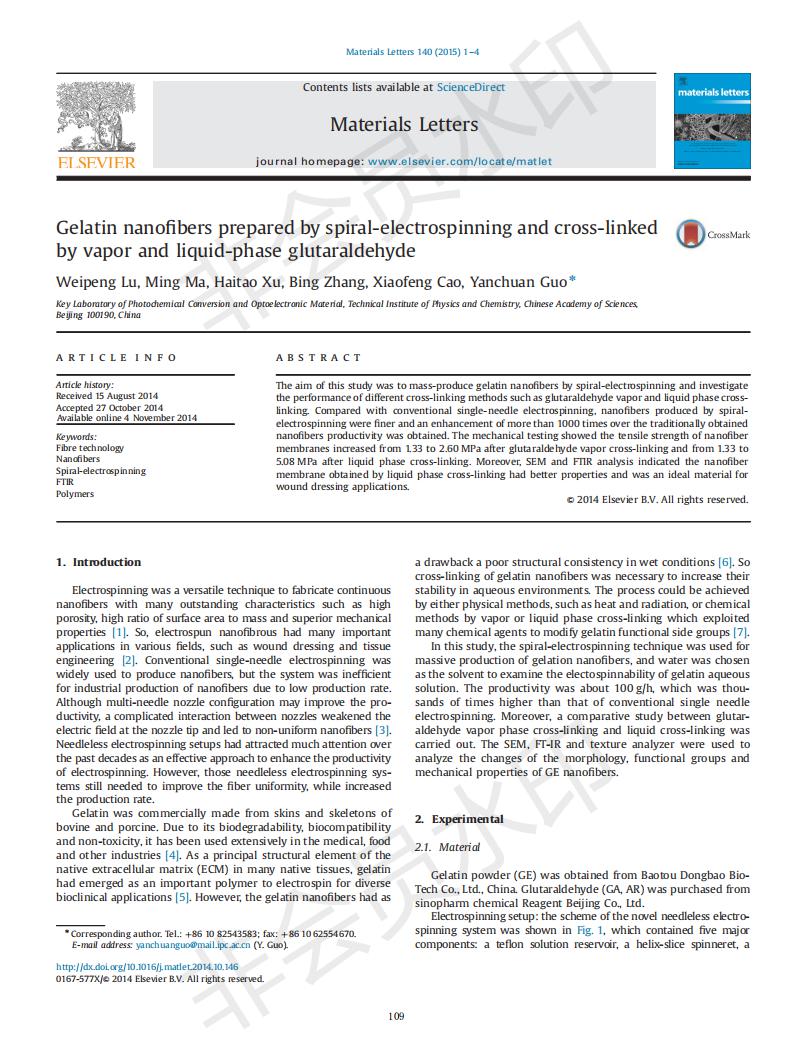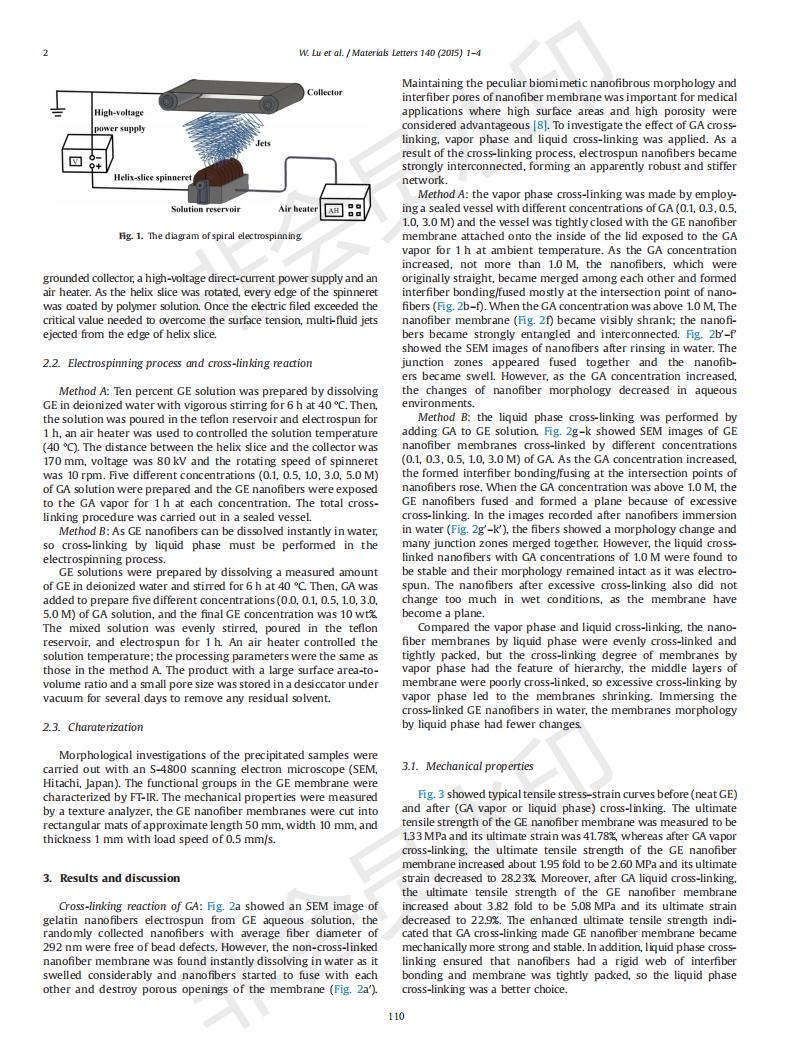 基于螺旋静电纺丝的明胶纳米纤维制备及戊二醛交联方法的研究