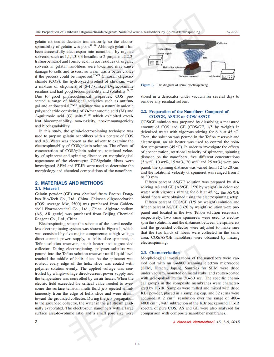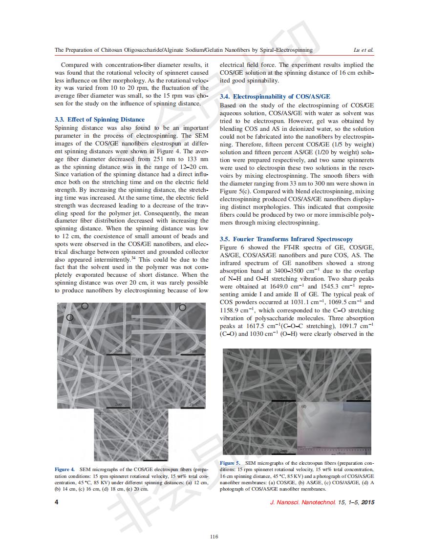 基于螺旋静电纺丝手艺的壳寡糖/海藻酸钠/明胶纳米纤维的制备研究