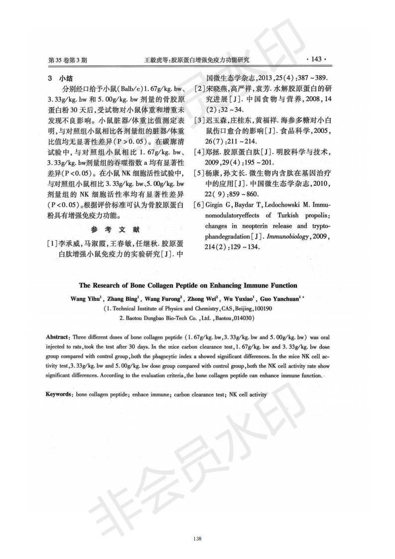 胶原卵白增强免疫力功效研究