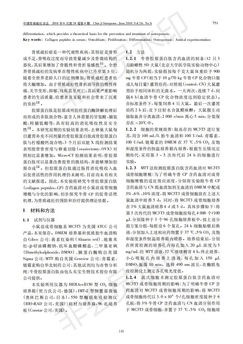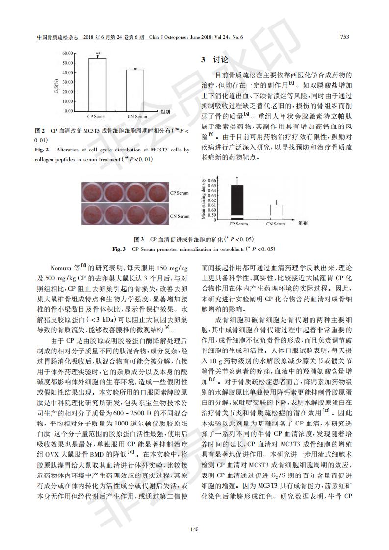 胶原卵白肽含药血清增进成骨细胞增殖和分解
