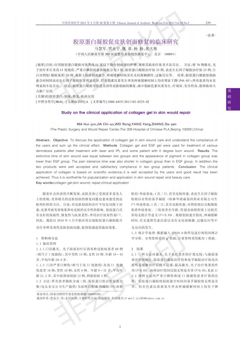 胶原卵白凝胶促皮肤创面修复的临床研究
