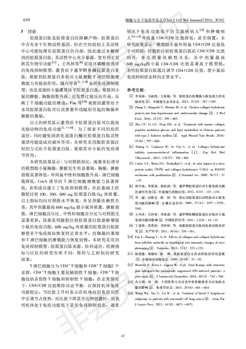 Intraperitoneal injection of collagen peptides enhances the immune function of glucocorticoid immuno